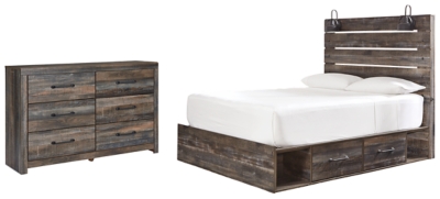 A refined take on barn board beauty its complex replicated wood grain showcases hints of burnt orange and teal tones for a sense of weatherworn authenticity. Get 5 in rewards with club o. Three open cubbies lined with a dimming led light strip keep bedtime reads top of mind. The drystan queen panel bed with storage.